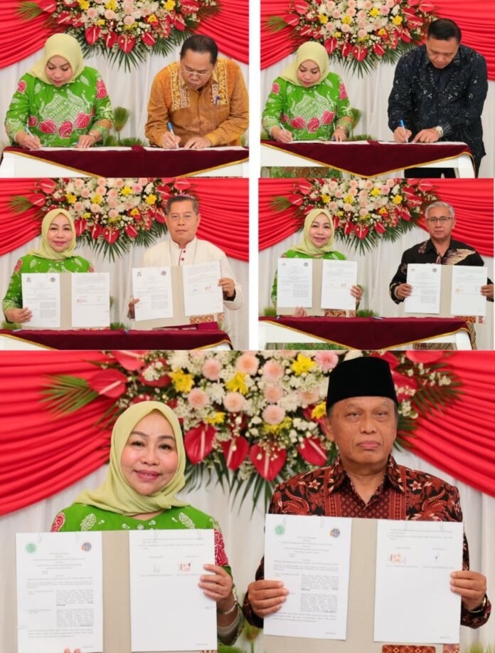 LAMANINDO.COM, MANADO – Menteri Agraria dan Tata Ruang/Kepala Badan Pertanahan Nasional (ATR/BPN), Nusron Wahid, menyaksikan penandatanganan Nota Kesepahaman (MoU) antara Kantor Wilayah BPN Provinsi Sulawesi Utara dengan sejumlah lembaga keagamaan, Kamis (17/07/2025). Kegiatan berlangsung di Wisma Negara Bumi Beringin, Kantor Gubernur Sulawesi Utara.