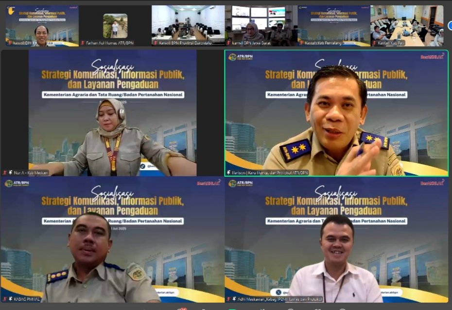 LAMANINDO.COM, JAKARTA – Dalam upaya memperkuat penyebarluasan informasi publik dan meningkatkan layanan pengaduan, Kementerian Agraria dan Tata Ruang/Badan Pertanahan Nasional (ATR/BPN) menggelar Sosialisasi Strategi Komunikasi, Informasi Publik, dan Layanan Pengaduan, Senin (21/07/2025).