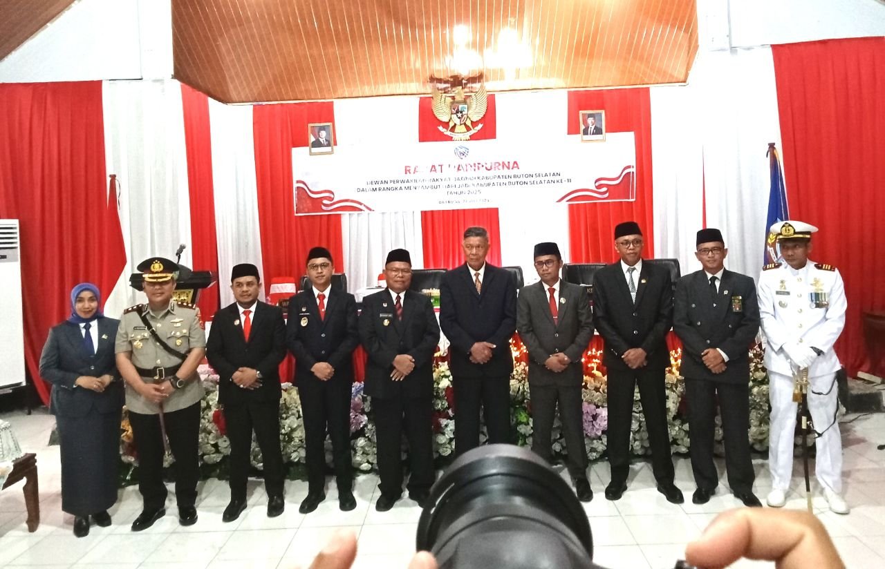 Sidang Paripurna dipimpin oleh Ketua DPRD Buton Selatan, Dodi Hasri. Hadir pula Wakil Bupati La Ode Risawal, Wakil Ketua DPRD Hasrun, Pj. Sekda La Ode Darus Salam, unsur Forkopimda, anggota DPRD, seluruh kepala OPD, dan tokoh-tokoh masyarakat. Tampak pula sesepuh Buton Selatan, LM Sjafei Kahar, yang turut memberikan warna dalam momentum bersejarah ini.