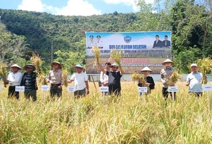 LAMANINDO.COM, BATAUGA – Pemerintah Kabupaten Buton Selatan bersama Dinas Pertanian dan Tim Penggerak PKK melaksanakan panen perdana padi di Kecamatan Sampolawa, Sabtu (7/9/2025). Kegiatan ini merupakan tindak lanjut program Asta Cita Presiden Prabowo Subianto dalam upaya mewujudkan swasembada pangan.