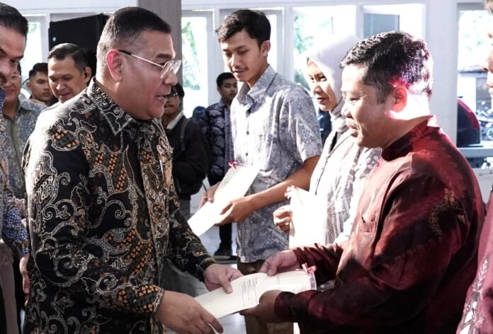 LAMANINDO.COM, GARUT – Wakil Menteri Agraria dan Tata Ruang/Wakil Kepala Badan Pertanahan Nasional (Wamen ATR/Waka BPN), Ossy Dermawan, menyerahkan 10 sertipikat tanah kepada para pelaku Usaha Mikro, Kecil, dan Menengah (UMKM) di Kabupaten Garut. Penyerahan ini dilakukan dalam kegiatan Lokomotif Akses Permodalan (LOKAMODAL) yang digelar di Pendopo Garut, Kamis (25/9/2025).