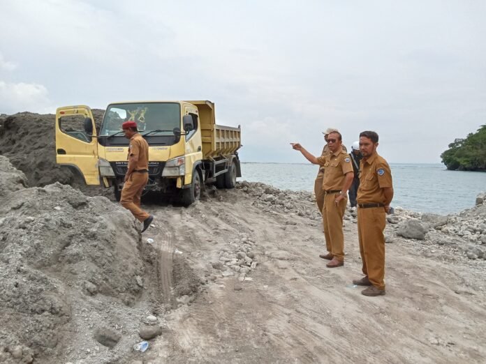 “Terumbu karang sudah banyak yang terangkat, pasir pantai diangkut ke darat, dan terjadi pendalaman di sekitar pantai. Kalau dibiarkan, kawasan ini bisa tenggelam karena abrasi,” jelasnya.