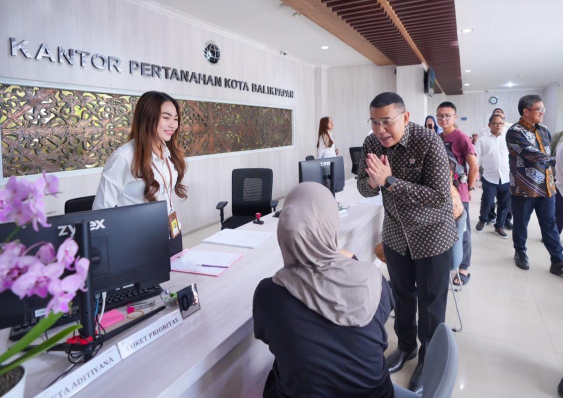 Selain memberikan arahan, Wamen Ossy juga melakukan peninjauan langsung di Kantor Pertanahan Kota Balikpapan. Ia menyapa masyarakat yang tengah mengantre layanan, berdialog dengan petugas loket, serta meninjau kondisi ruang kerja dan arsip.