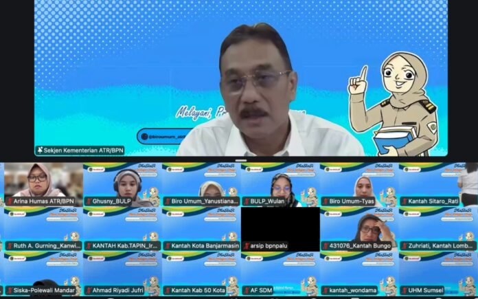 Sekretaris Jenderal (Sekjen) Kementerian ATR/BPN, Dalu Agung Darmawan, menegaskan bahwa pengelolaan arsip memiliki peran krusial dalam penyelesaian berbagai persoalan pertanahan. Hal tersebut ia sampaikan saat membuka Sosialisasi Permen ATR/Kepala BPN Nomor 2 Tahun 2026 yang digelar secara daring pada Rabu (04/03/2026).