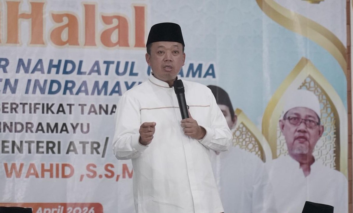 LAMANINDO.COM, INDRAMAYU — Menteri Agraria dan Tata Ruang/Kepala Badan Pertanahan Nasional (ATR/BPN), Nusron Wahid, mengajak Nahdlatul Ulama (NU) untuk terus memperkuat peran nyata dalam memberikan manfaat bagi masyarakat luas. Ajakan tersebut disampaikan dalam kegiatan Halalbihalal dan Penyerahan Sertipikat Tanah Wakaf Pengurus Cabang Nahdlatul Ulama (PCNU) Indramayu, Minggu (19/04/2026).